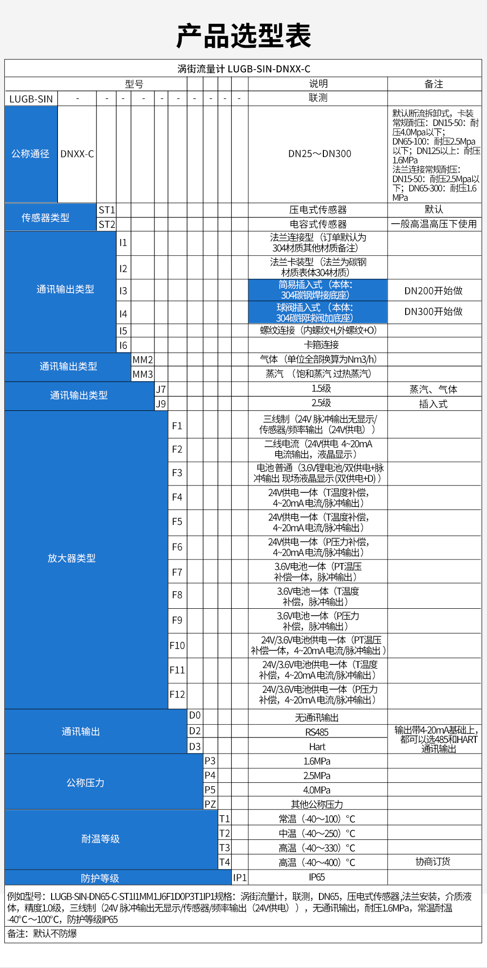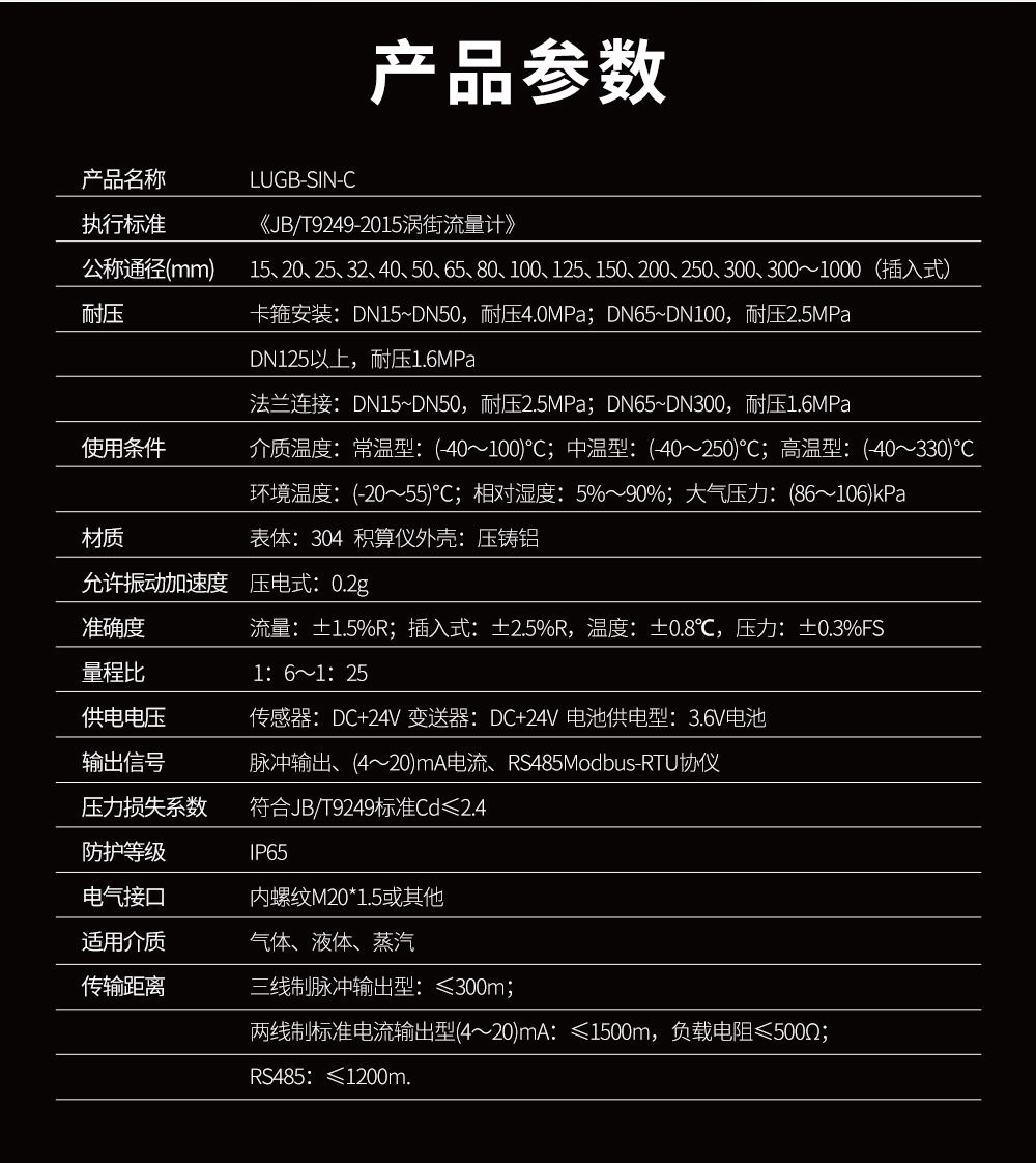 聯測_LUGB-SIN-C_渦街流量計_經濟款_蒸汽/壓縮空氣/導熱油等_